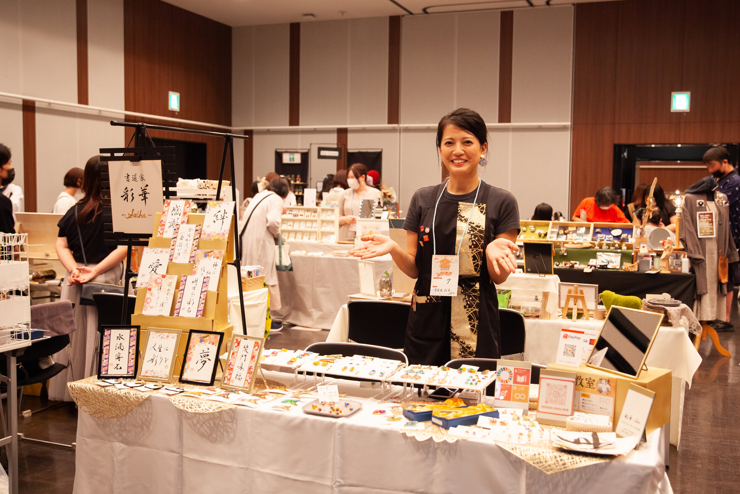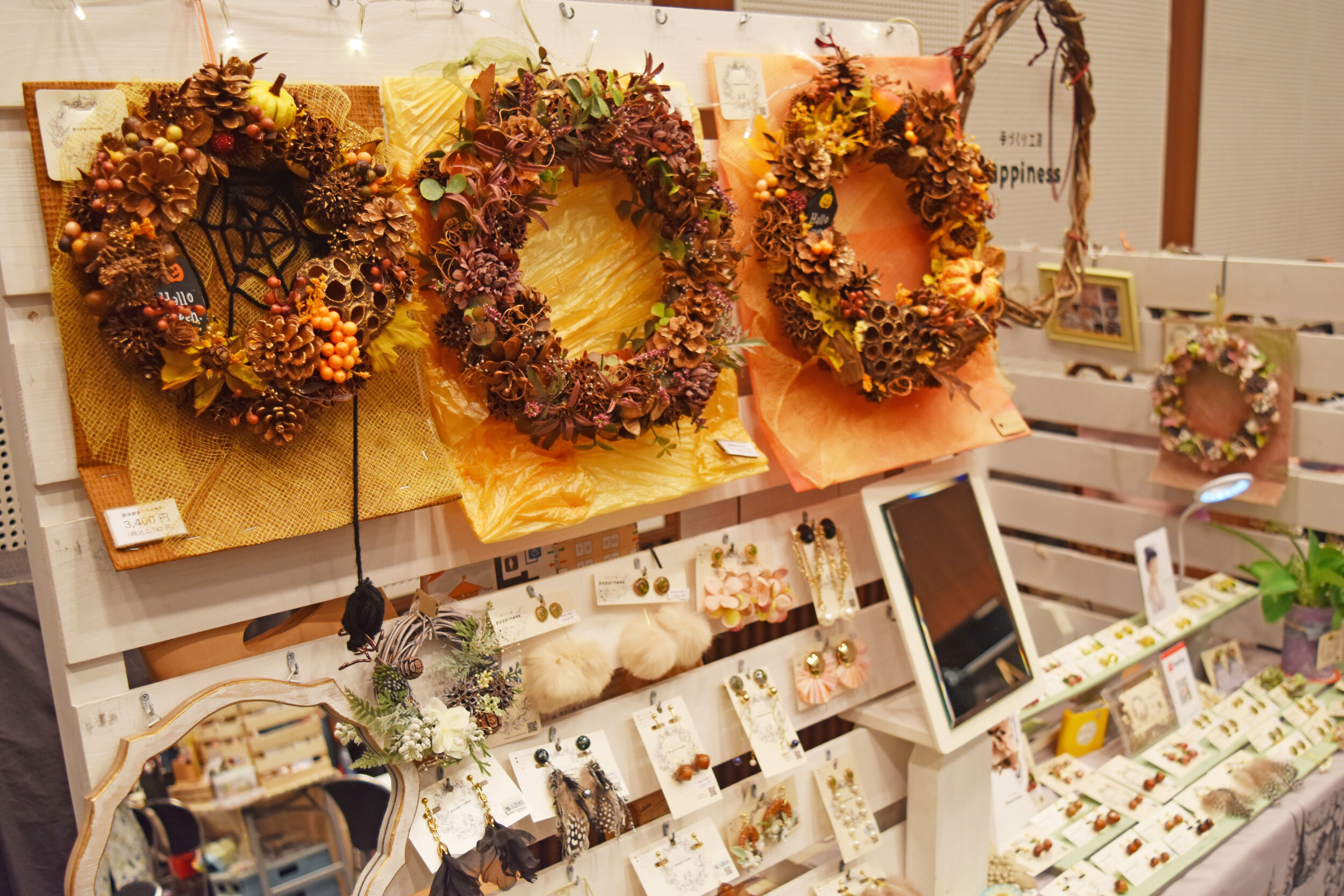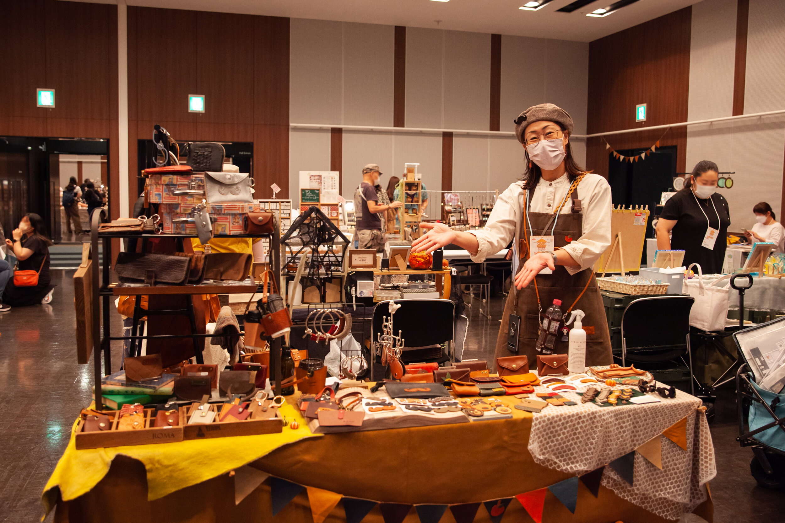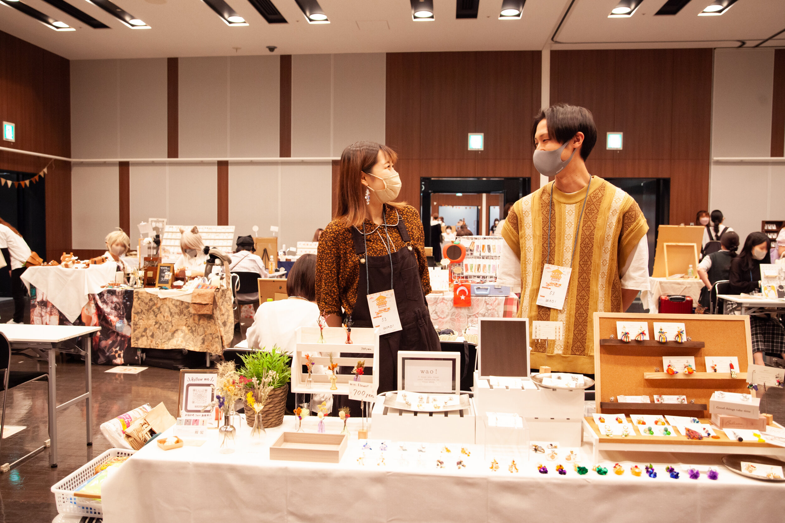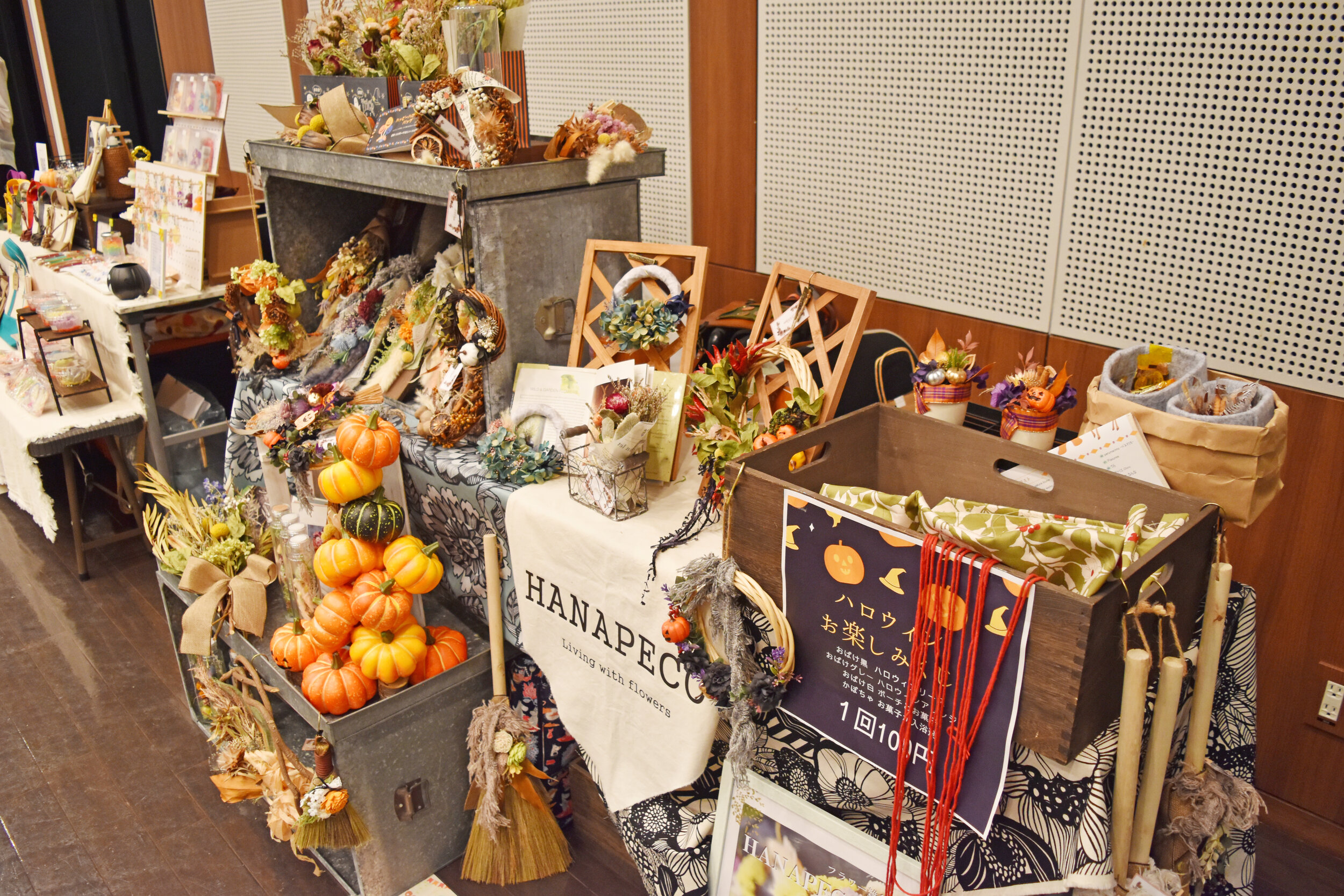 名古屋デザイナー学院様からは学生様が参加をしていただき、トミタパックス株式会社様からは段ボール遊具の体験コーナー、朝日産業株式会社様からは超音波溶着器キュッパの体験コーナーをご出店いただきました。一般出店者の年代は20代~60代と幅広い年代の方に参加をいただき台風の中、友人同士、家族連れなどで盛り上がっていました。